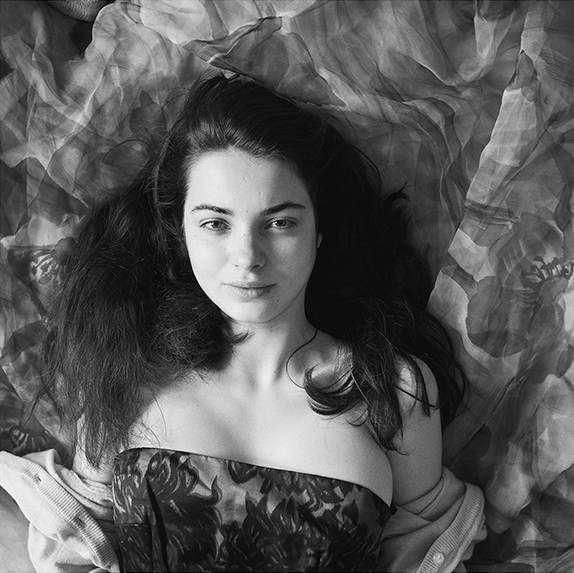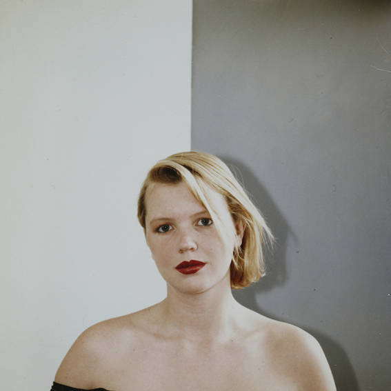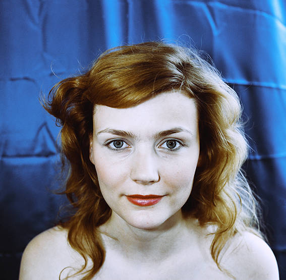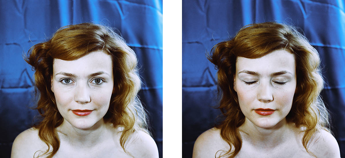 Femme sur fond bleu, yeux ouverts (dyptique G)