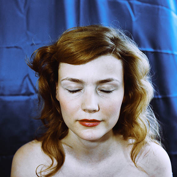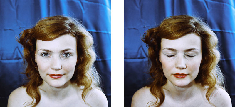 Femme sur fond bleu, yeux fermés (dyptique D)